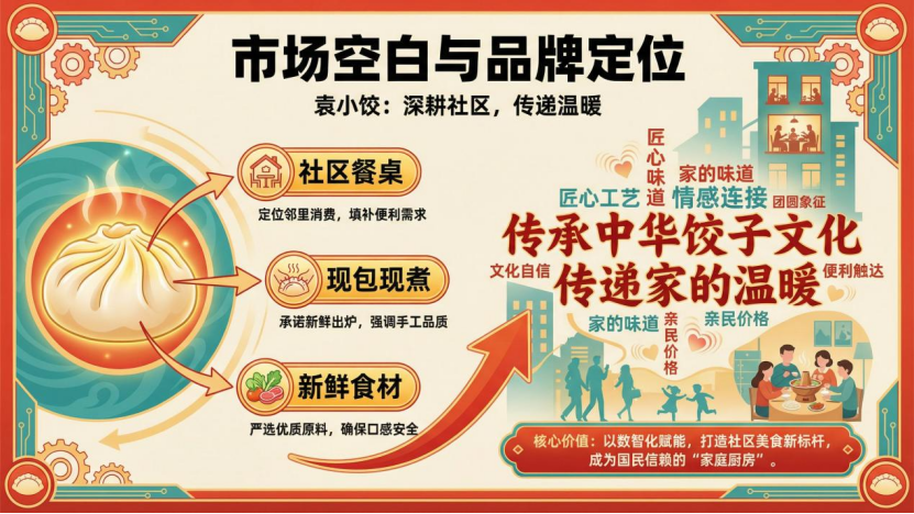 以"传承中华饺子文化,传递家的温暖"为使命,袁小饺把自己定义为社区家庭餐桌上的"新中式鲜饺"品牌。袁小饺强调食品安全,从面粉、蔬果到鲜肉,都坚持相对统一的品质标准。饺子、云吞、面食构成核心产品矩阵,搭配玉米汁、南瓜汁等营养饮品,围绕社区家庭餐桌构建了一套完整的产品体系。