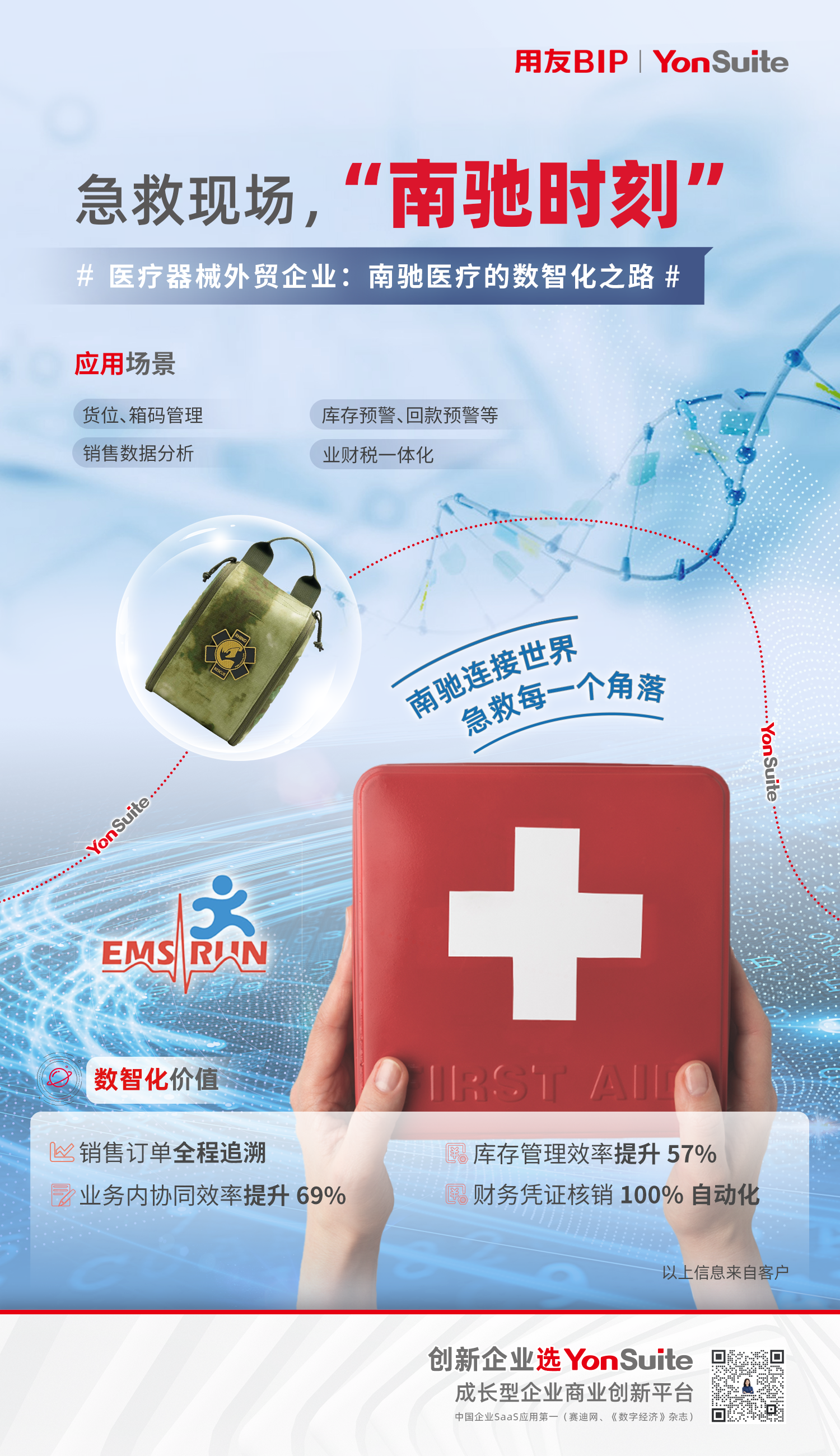 南驰医疗与用友YonSuite合作,构建了“业财融合,成本精细化管控”的数字化平台