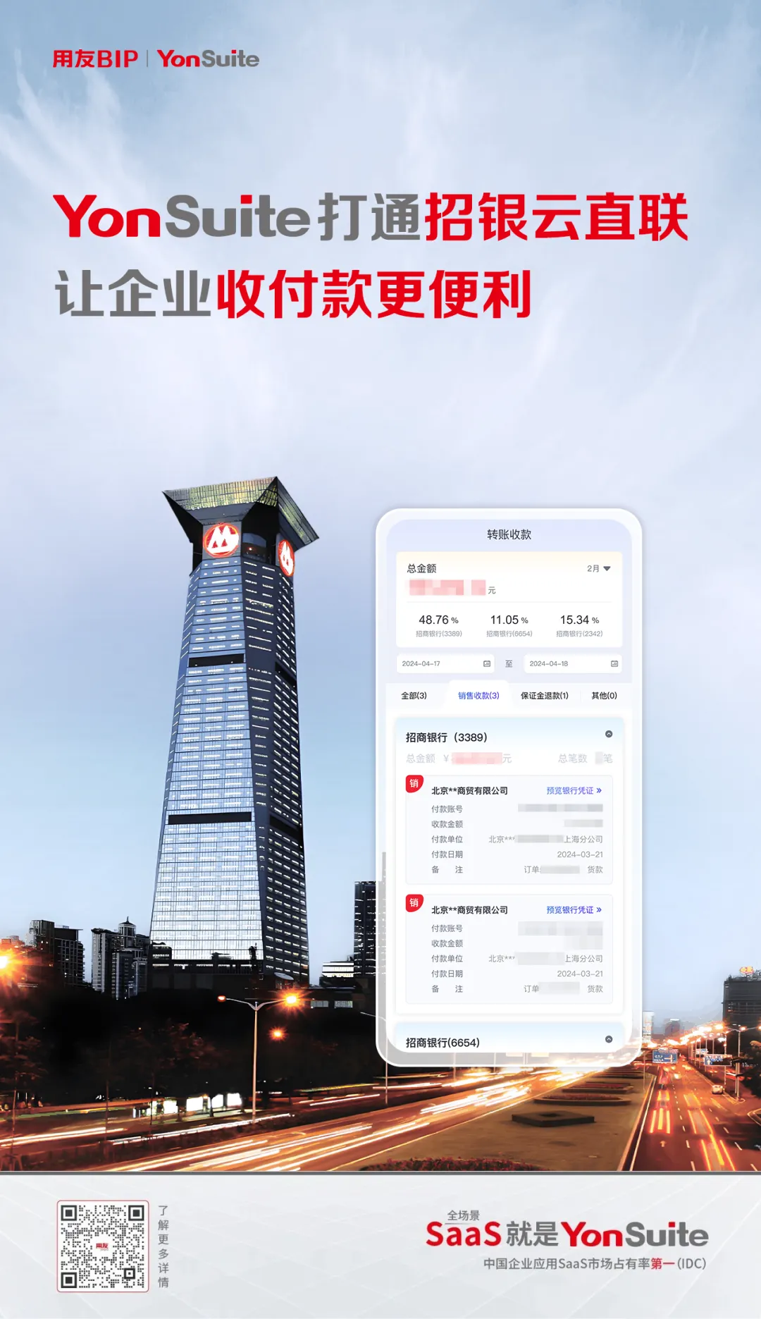 用友YonSuite打通招银云直联,让企业收付款更便利