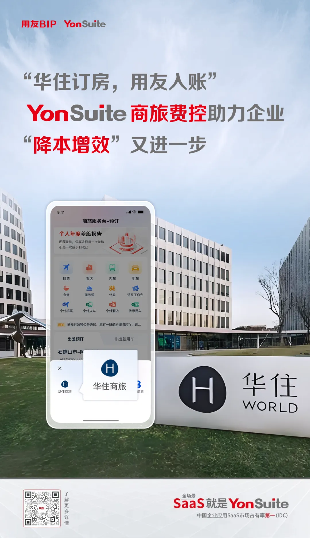 “华住订房,用友入账”,YonSuite助力企业“降低成本”再进一步