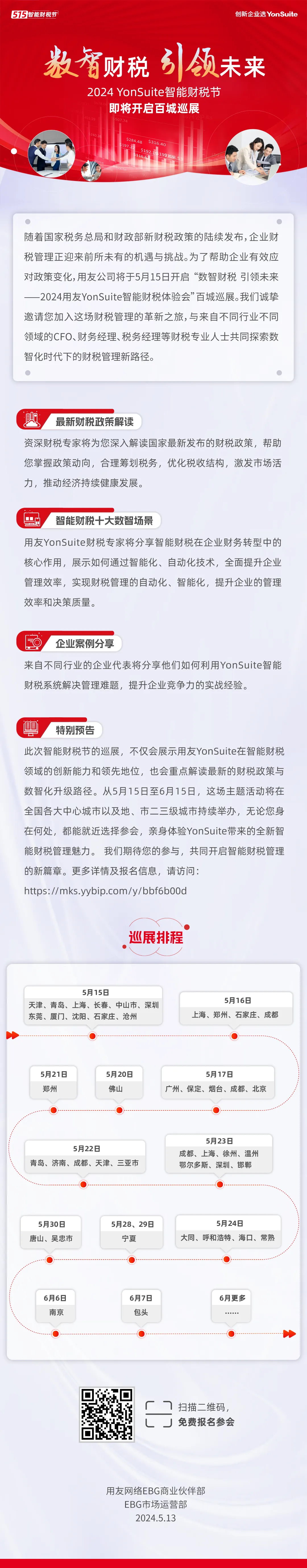 2024YonSuite智能财税节,百城巡展,引领财税管理新篇章。 了解更多
