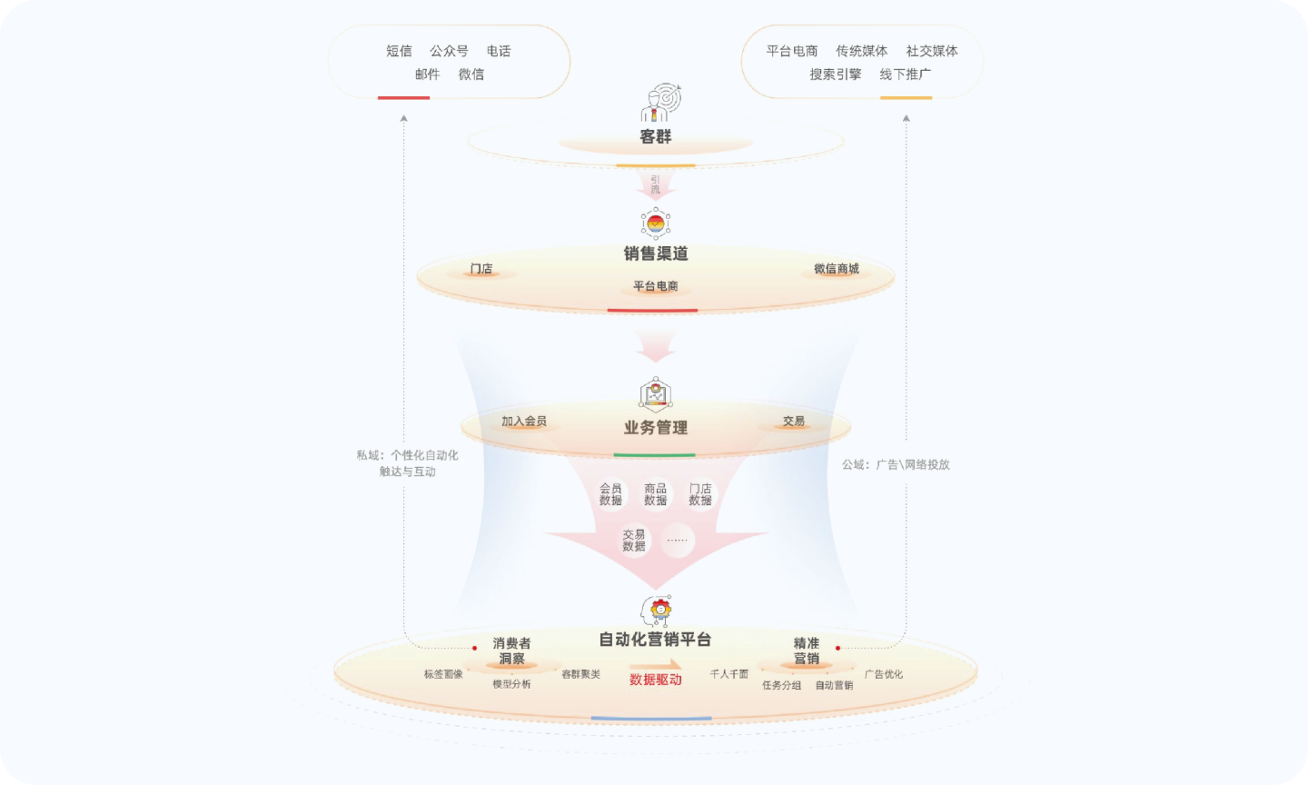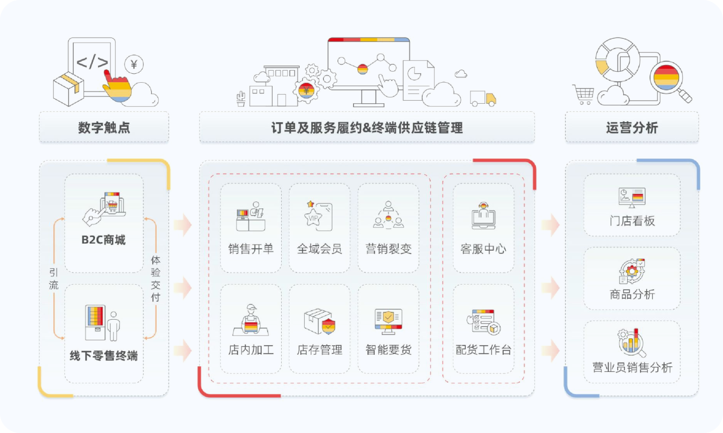 市场环境和消费者习惯的变化,消费品企业需要以消费者为核心重构营销模式,搭建新的营销链路,更好的触达消费者并提供优异的购物体验,持续占领消费者心智。